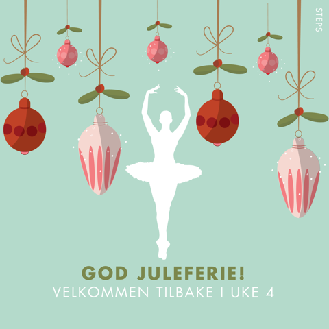 Steps Dansestudio har juleferie i uke 50, 51, 52, 1, 2 og 3.Vårsemesteret starter i uke 4.God jul og godt nyttår!